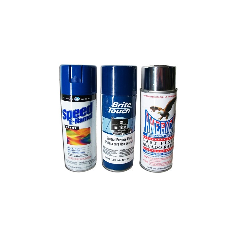 Pintura en Aerosol TOOLCRAFT 285gr para Interiores y Exteriores. Colores: Azul Ford (Z-470), Azul Marino (BTG-62) y Cromada(BTG-66)