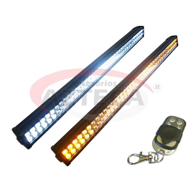 Barra Luz con 80 HiperLED’s 240W Bicolor con Control para Funciones y Estrobo. Carcasa Aluminio, Mica Reforzada, a Prueba de Agua. Luz Blanca para Distancia y Luz Ámbar para Niebla, Polvo, Etc. Medidas: 105 x 9 x 8 cm (660-VLB-24003)