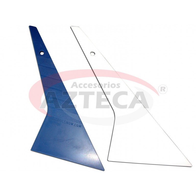 Espátula para polarizar con teflón, tipo "Quick foot", resistente y versátil, colores: blanco y azul.